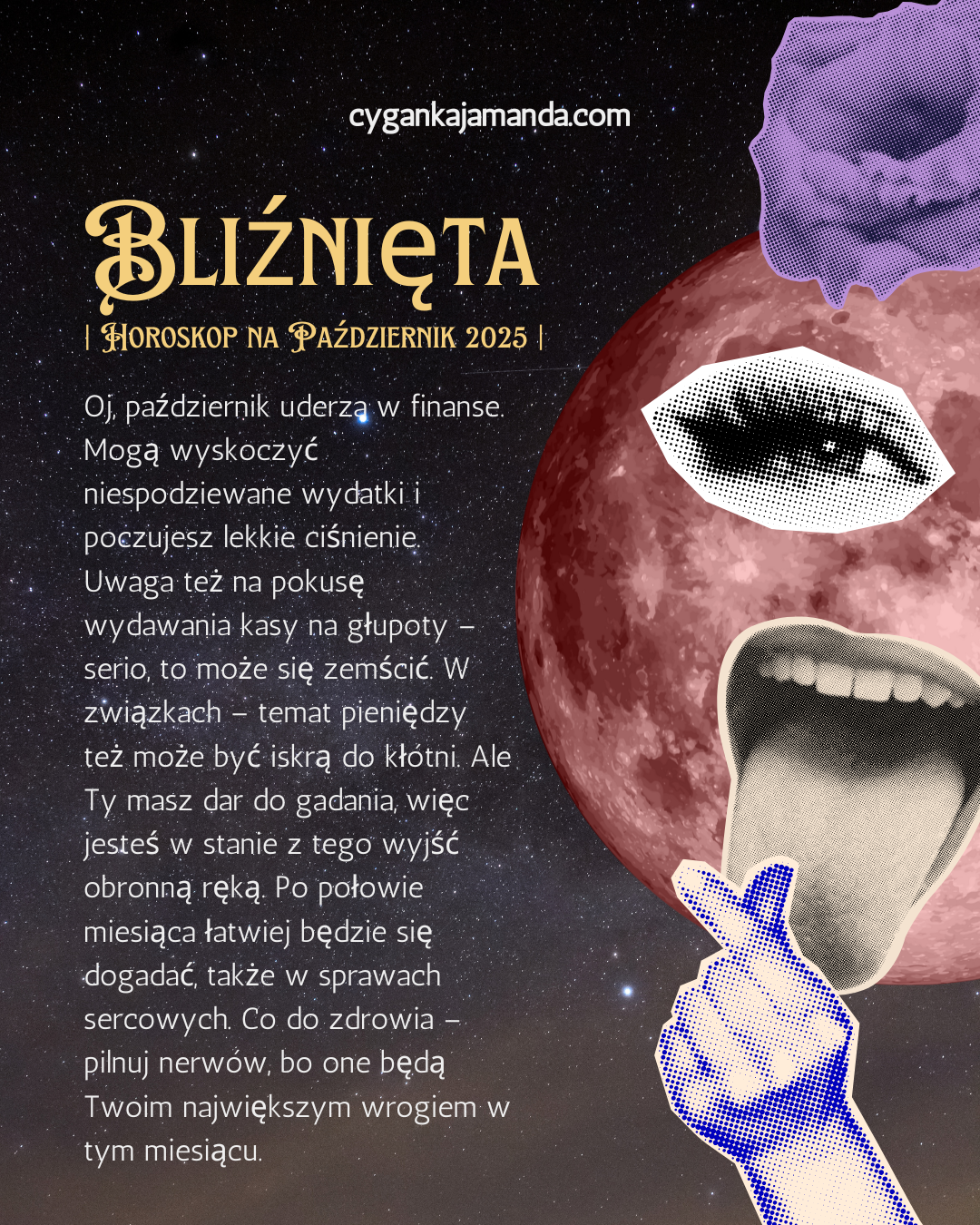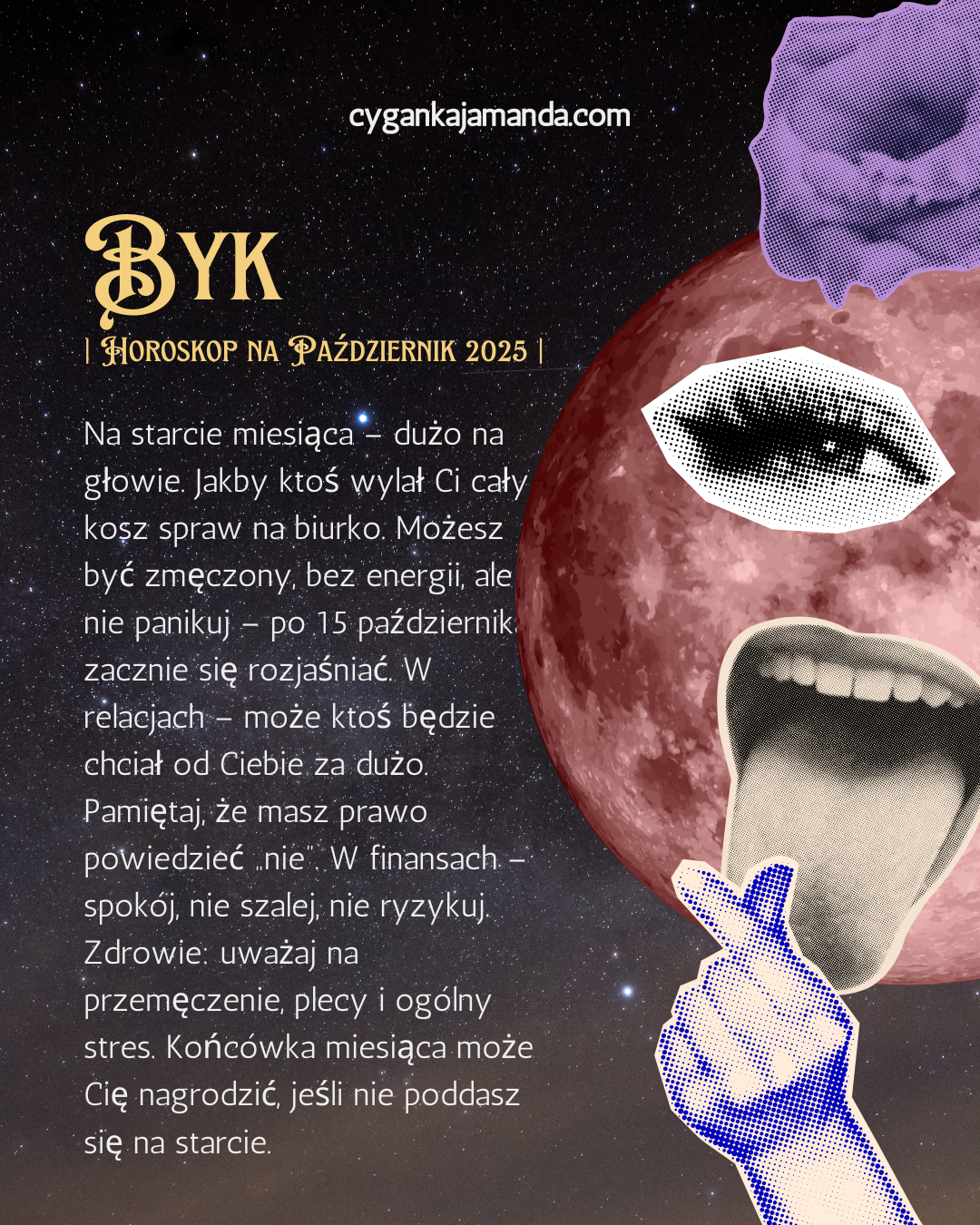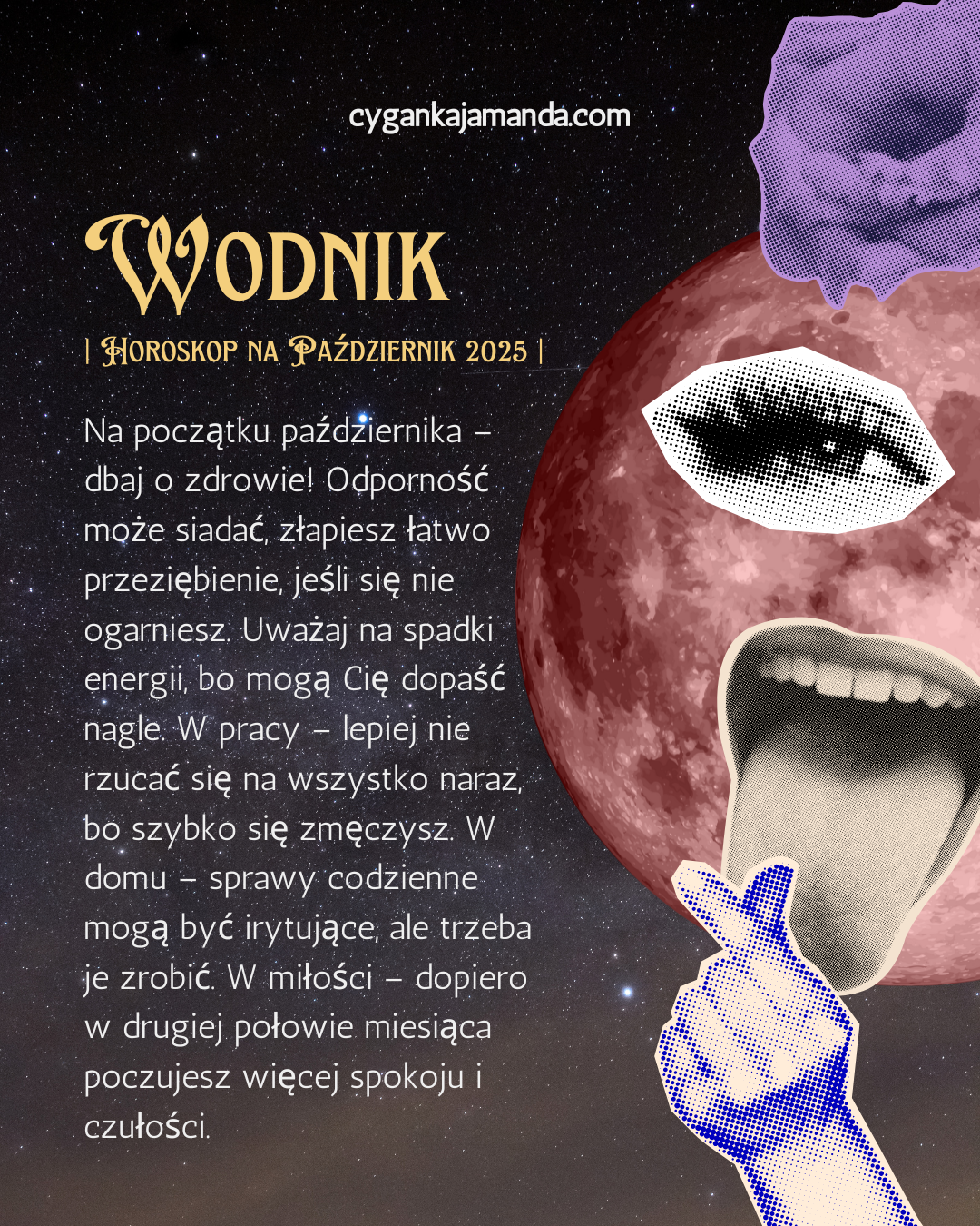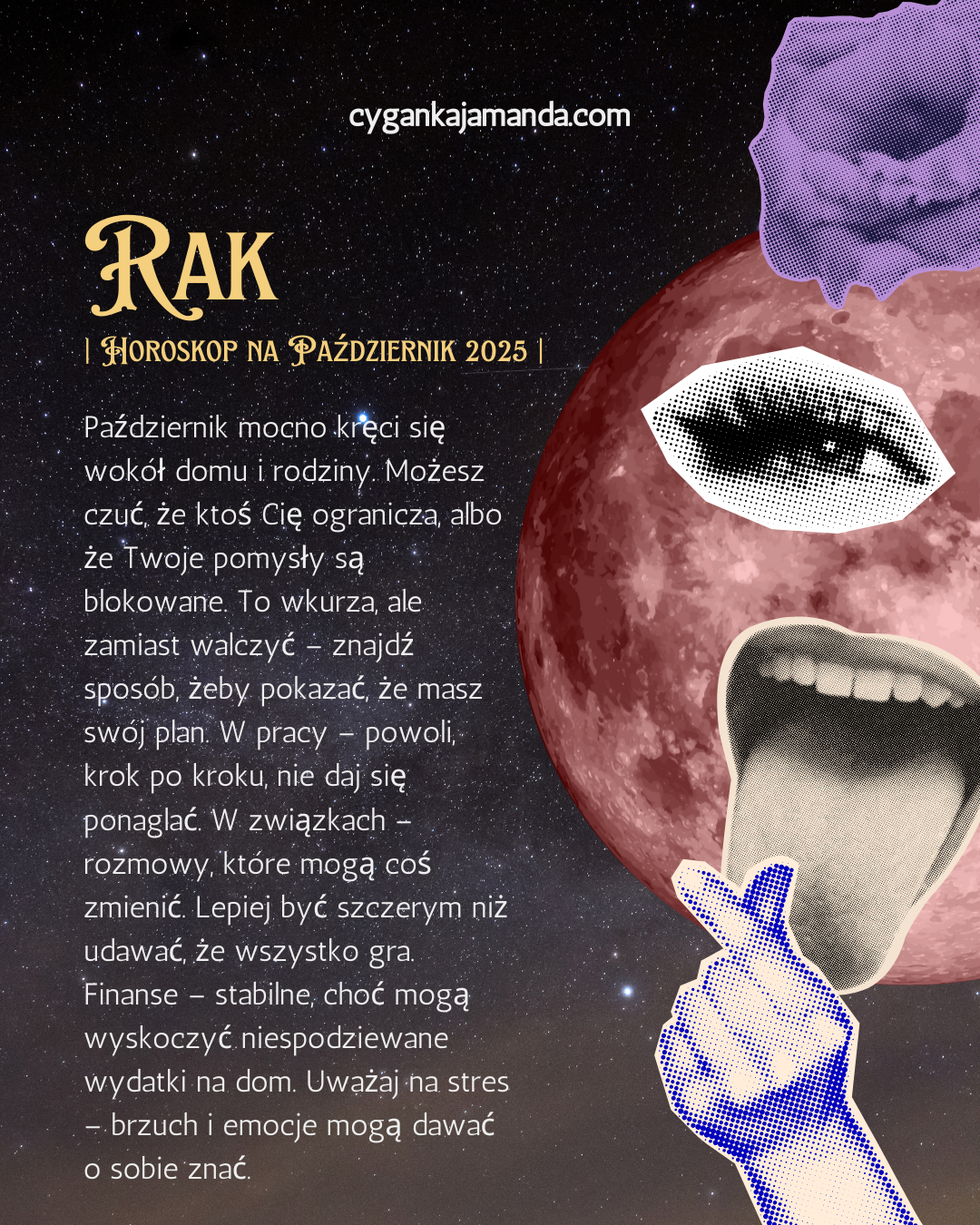 Pełnia w Baranie (7.10) podsyci odwagę i wybuchowe decyzje – uważaj, by nie przesadzić. Nów w Wadze (21.10) otworzy drzwi do nowych początków w relacjach i pomoże znaleźć równowagę. Pierwsza połowa miesiąca może być nerwowa i pełna napięć, ale po 15 października energia łagodnieje, a w trzeciej dekadzie sprawy zaczynają się układać. To czas testów, cięć i nowych startów – kto przetrwa chaos, ten wejdzie w listopad silniejszy i bardziej świadomy. 🌕🌑